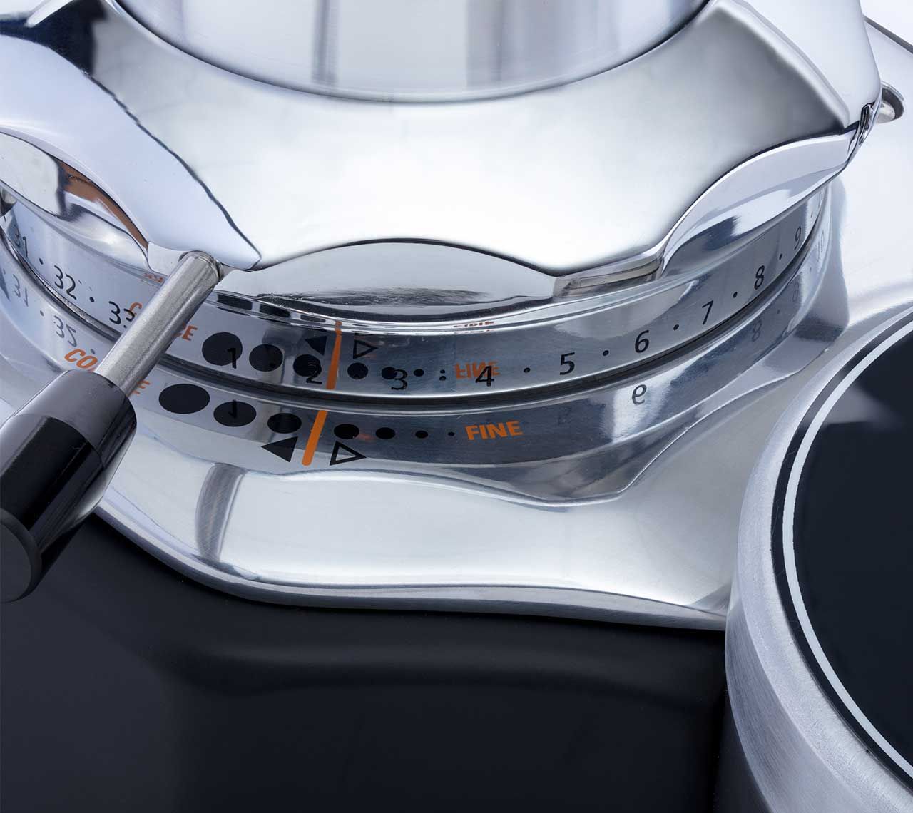 La regolazione elettronica permette di impostare tre diversi dosaggi, mentre il contatore dosi totale non resettabile assicura un monitoraggio costante dell’utilizzo. La regolazione della macinatura è micrometrica continua, garantendo sempre il massimo controllo e la granulometria perfetta per ogni esigenza.