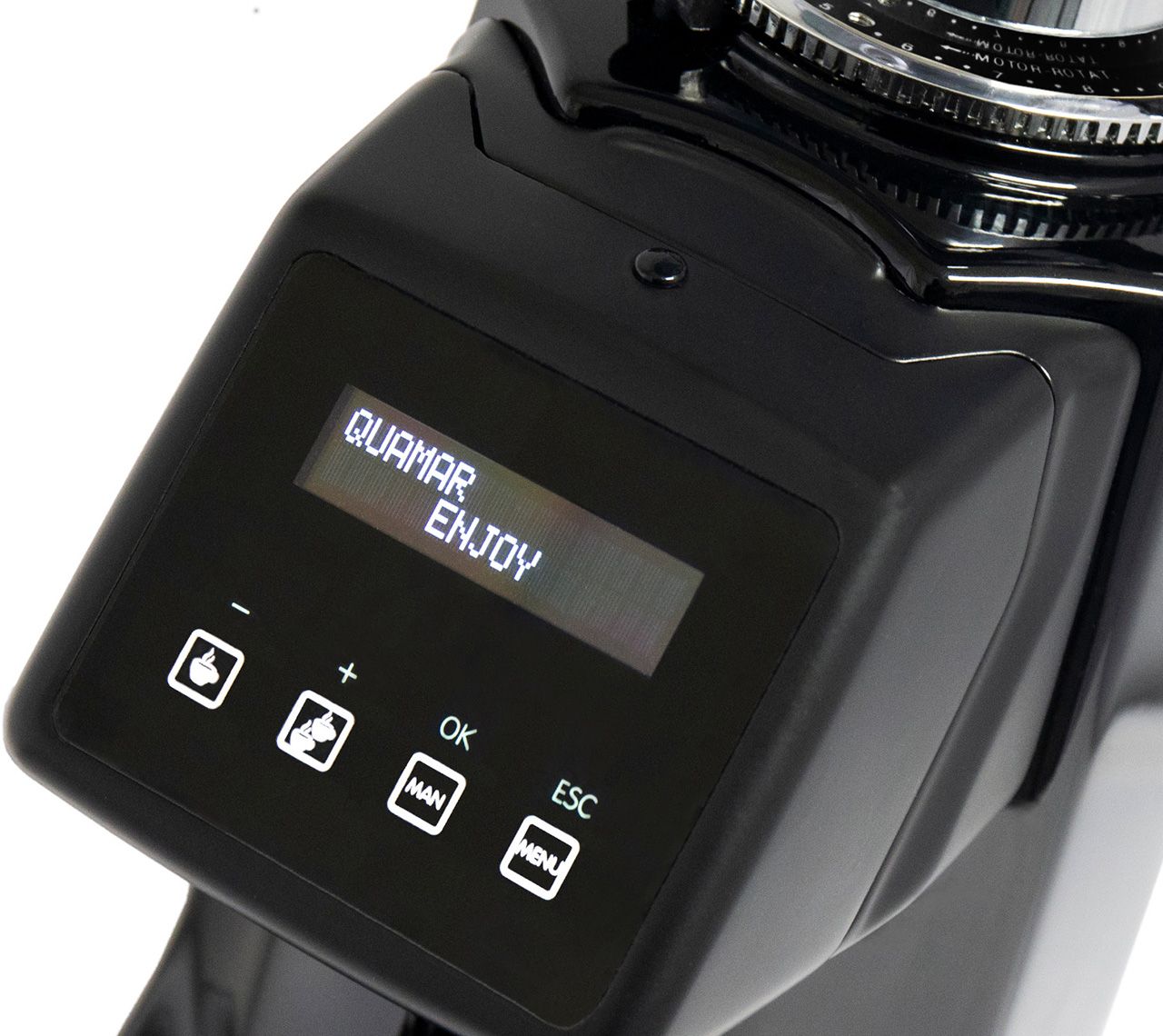 Quamar's integrated external tamper is an innovative optional accessory designed to be installed on the side of the coffee grinder with a dedicated support. Its main feature is the versatility in terms of diameter sizes, offering options of 53mm and 58mm to accommodate various types of portafilters. The side installation allows for quick access to the tamper, improving the efficiency of the coffee preparation process. Additionally, the dedicated support ensures consistent pressure on the coffee, which is essential for achieving an excellent extraction.