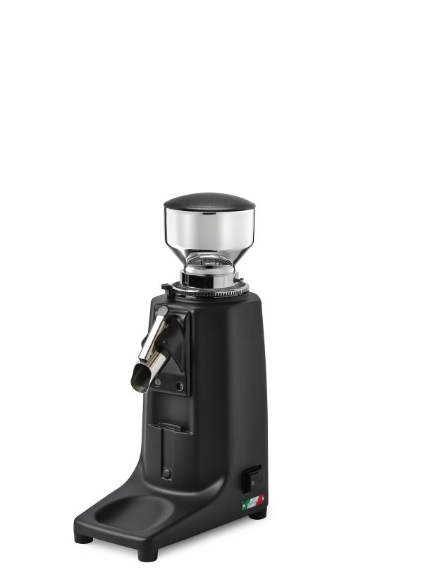 L’M80D è dotato di una pratica leva ferma sacchetto con estremità gommata, posizionata strategicamente sopra la bocchetta di uscita del caffè macinato.